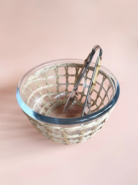 O item contém 1 unidade de travessa/bowl vidro e palha natural.